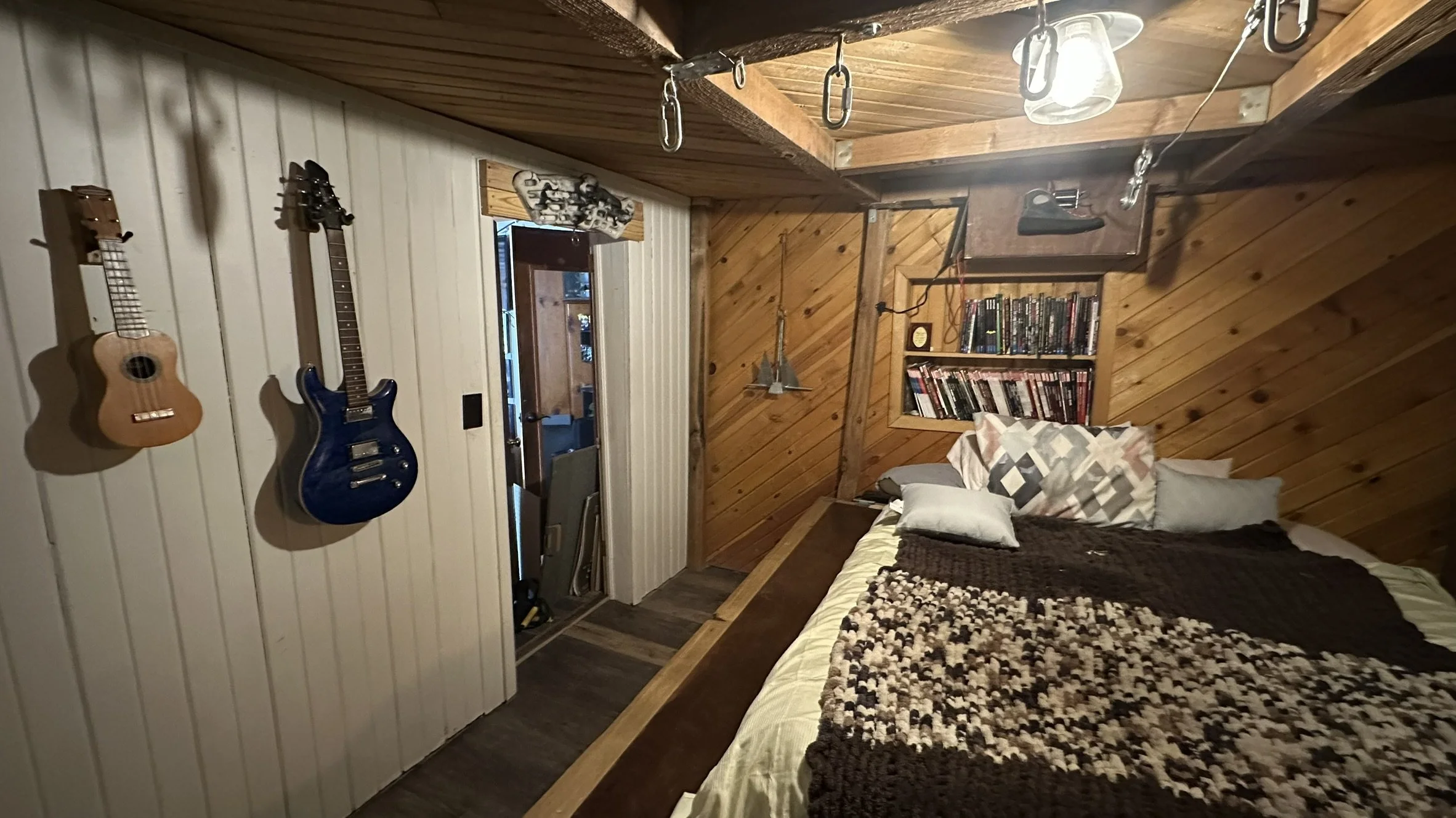 Coming in from out of town, or just want a fun place to crash? You can stay with our guides! Included with your guided experience you can stay with us in a unique climbing themed room! Sleep on our guest bed, then in the morning watch as it raises into the ceiling to become a climbing wall for your warm ups!